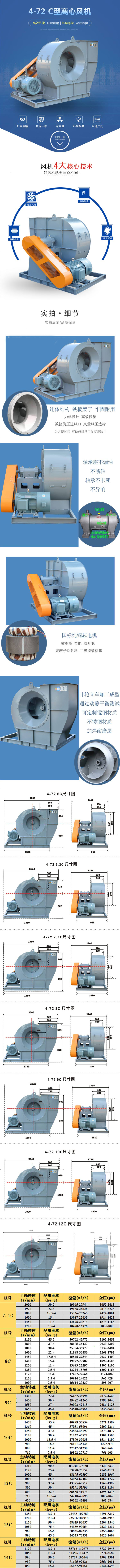 4、4-72離心風(fēng)機(jī)電機(jī)直聯(lián)傳動規(guī)格有:NO2.8A、3.2A、3.6A、4A、4.5A、6A聯(lián)軸器傳動規(guī)格有:NO6D、8D、10D、12D;皮帶輪傳動有:NO6C、8C、10C、12C及NO16B、20B共16種規(guī)格。