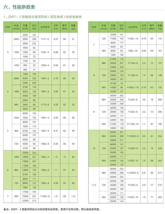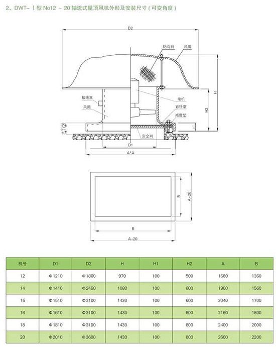 屋頂風機型號、結構及性能: