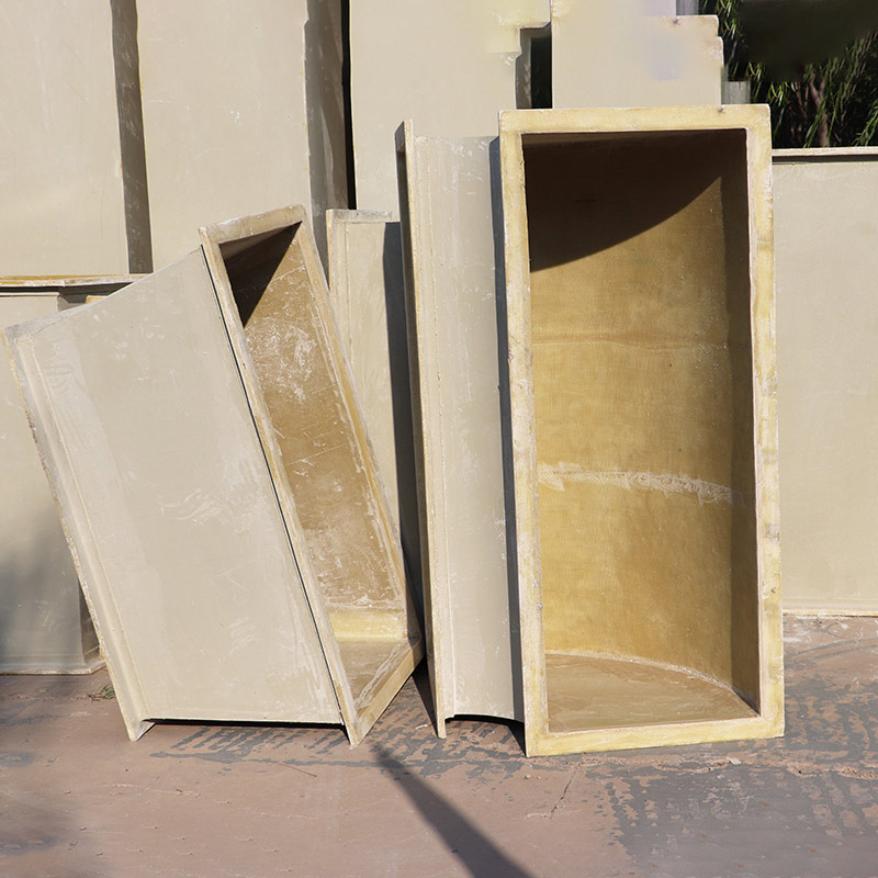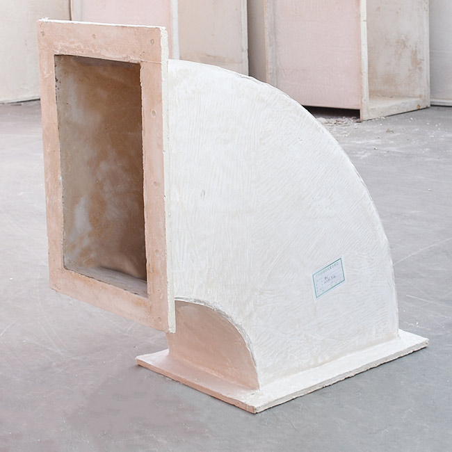 無機玻璃鋼風管為純手工制作,一次性成型,風管厚度可能有不均勻之處。風管也可以制作成雙層保溫型,一般默認保溫厚度20mm,也可根據客戶的需要定做。