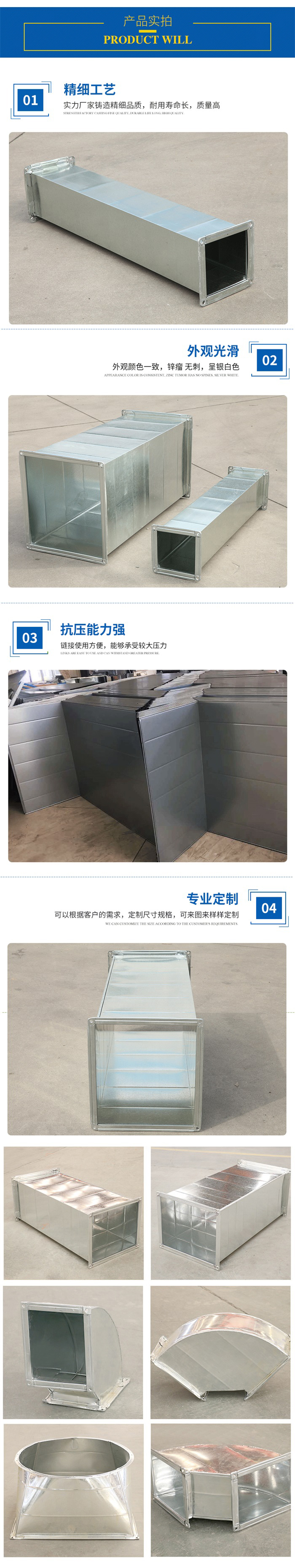 鍍鋅風(fēng)管產(chǎn)品特點(diǎn):